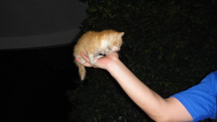 在发生大猫进门这事的几天后的星期五,儿子要和我们一起过去,我先下楼在亭子边等他们,这时九点多了,猫们已经吃完散了,突然角落传来几声猫叫,走过去一看,好小的一只猫,可能刚生下来没几天,特别可爱,我就把它抱了起来,这时老婆和儿子下来了,我妈也下来散步,儿子见我拿着小猫特别高兴,我妈就很不高兴叫我赶紧放掉,老婆也要我把猫放掉,她一向有点怕猫和狗,虽然我心里已经起了养的念头但想到最终还是得我妈来养的时候就打消了这个念头,可我把猫放下后,它却跟着我跑,儿子又一个劲说养吧养吧,我就又抱了起来对儿子说先带过去一晚,明天带过来放掉。